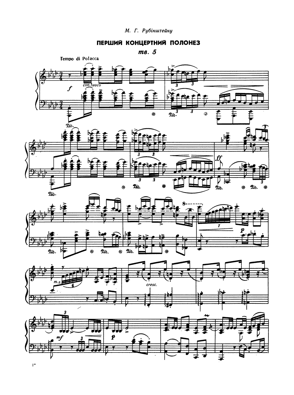 FIRST CONCERT POLONAISE, Op. 5 (Mykola Lysenko). Dedicated to M. G. Rubinstein.